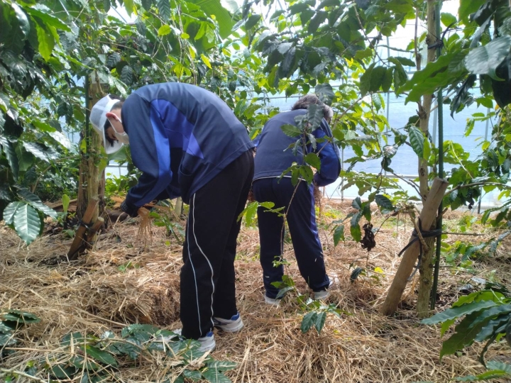 先週、高森高校の1年生2名が、インターンシップで3日間来場してコーヒーファームの作業を手伝ってくれました。