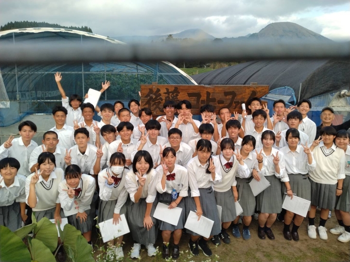 今月12日に、島根県の益田翔陽高校の生徒・職員28名が当ファームを訪れ、研修を行いました。